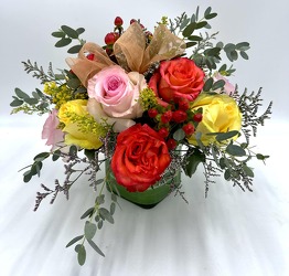 Assorted dozen roses, with eucalyptus,caspi,, and solidago. a great i love you gift ! IT MAY HAVE RED ROSES BUT CANNOT BE ALL RED ROSES YOU ARE SO VERY SPECIAL